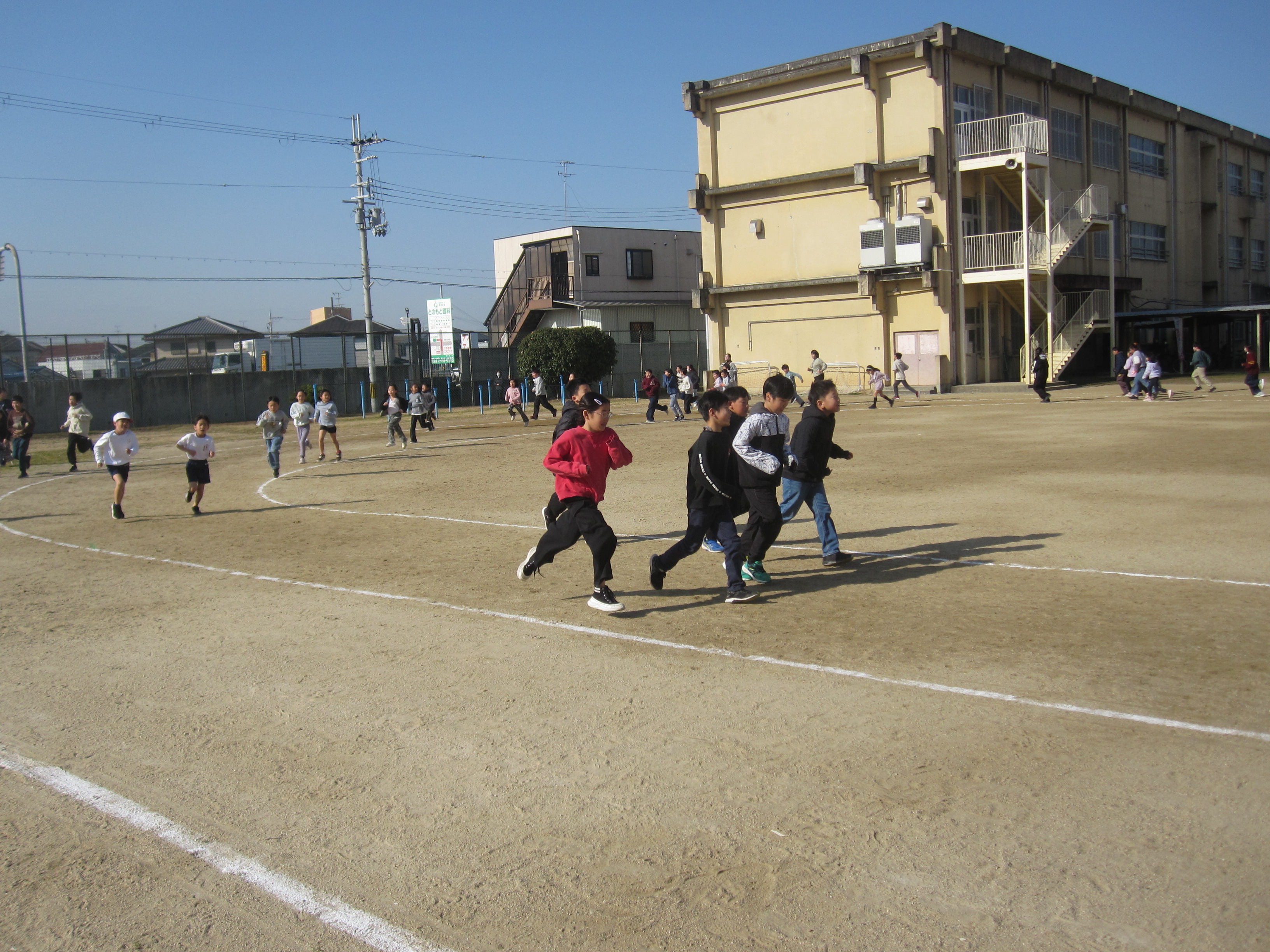 1/19 ロング走 体力づくりの一環として、例年取り組んでいます。2時間目と3時間目の間のロング休憩に実施しています。今年は、他の休み時間でも自主的に走っている子どもたちが多くみられます。